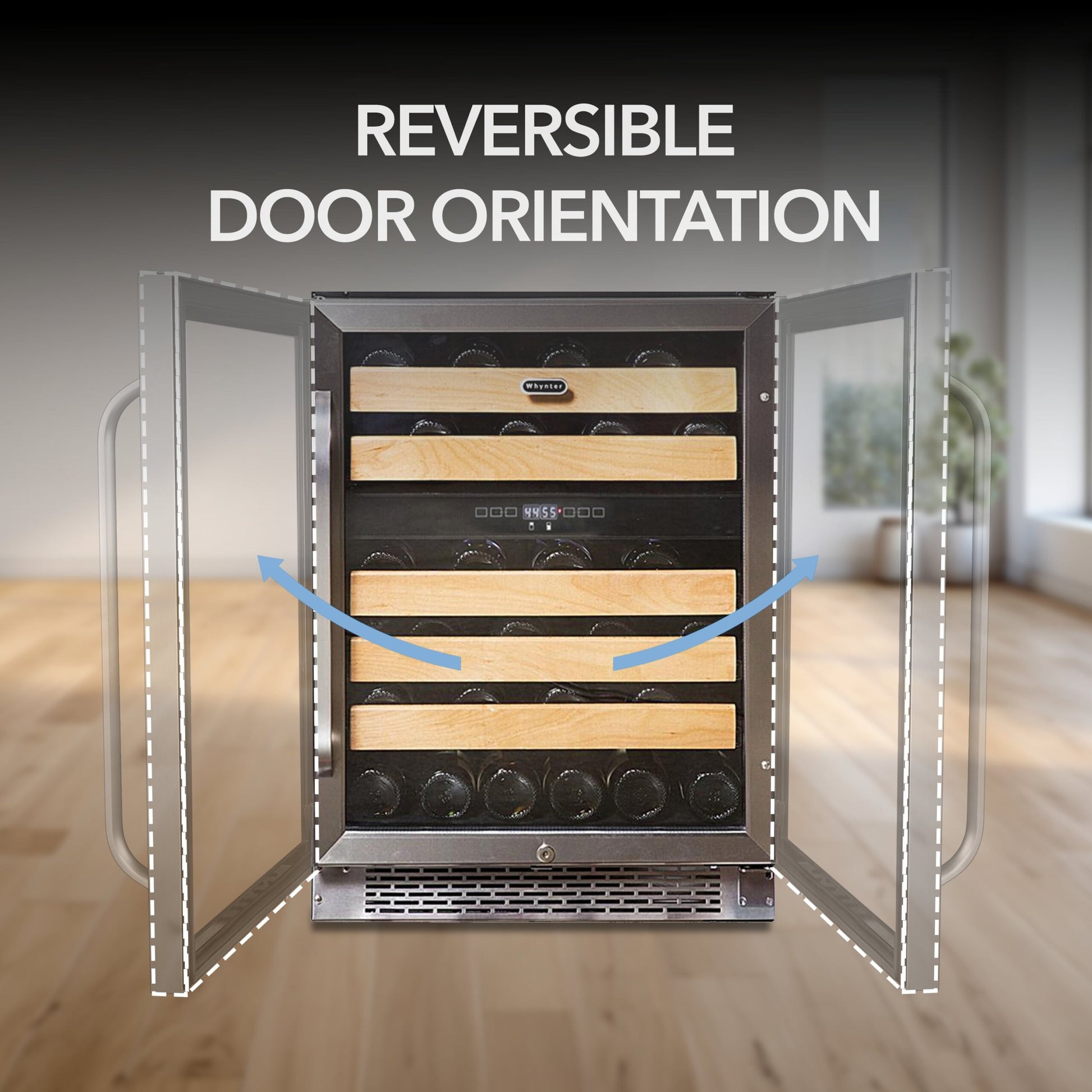 The Whynter BWR‑462DZ offers premium wine storage with dual zones for reds and whites engineered for both built‑in under‑counter installation or freestanding placement. With capacity for up to 46 standard 750 mL bottles and precision compressor cooling (upper zone ~40‑55 °F; lower zone ~50‑65 °F), this unit combines advanced functionality with refined design.