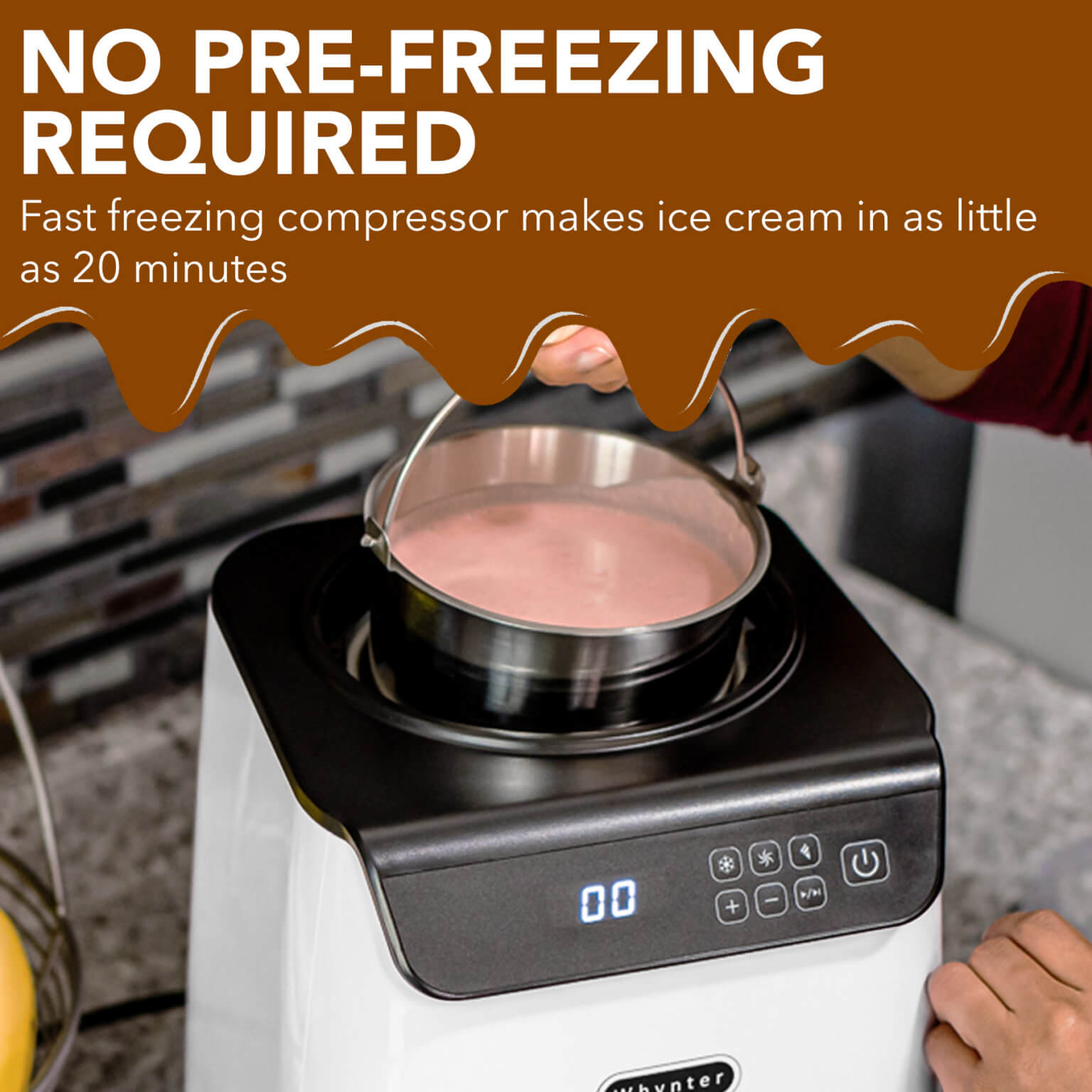 ● Self-contained compressor-powered frozen dessert ice cream maker that does not require pre-freezing