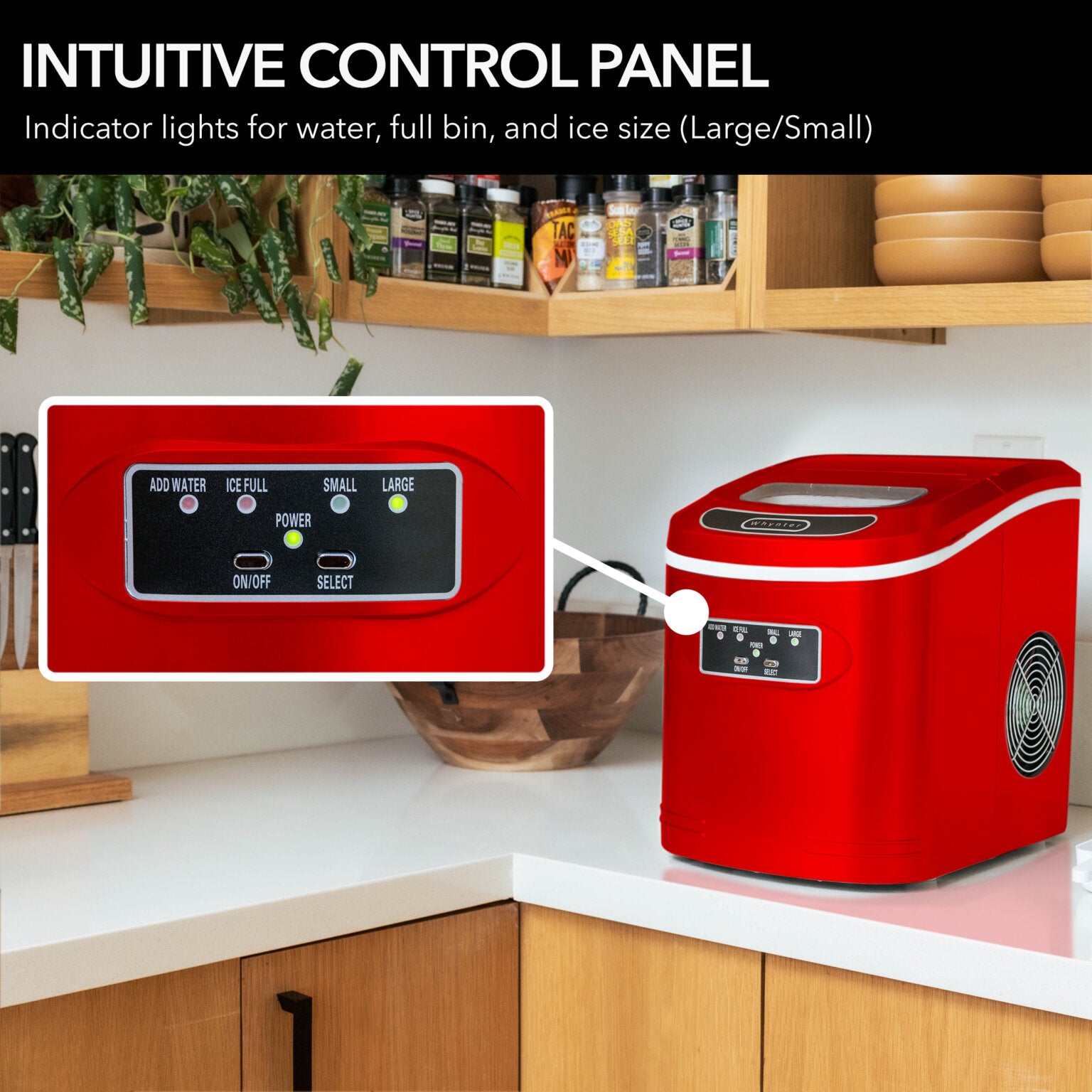 Whynter IMC‑270MR 9.5 in. 27 lbs. Portable Countertop Ice Maker Bullet Ice Machine with 2.2L Reservoir and 1.5 lb. Bin in Metallic Red